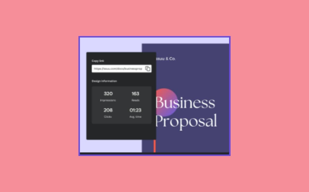 - احصل على رؤى قيمة حول أداء المحتوى من خلال الوصول إلى إحصائيات Issuu المضمنة داخل مساحة عمل Canva، واتخاذ قرارات مبنية على البيانات حول كيفية تكرار التصميمات؛